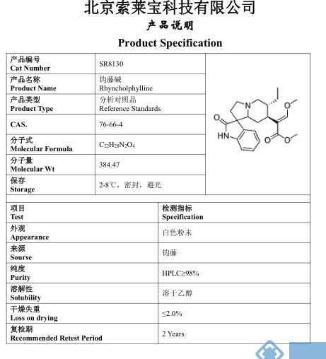 钩藤碱标准品-常用生化试剂-试剂-生物在线